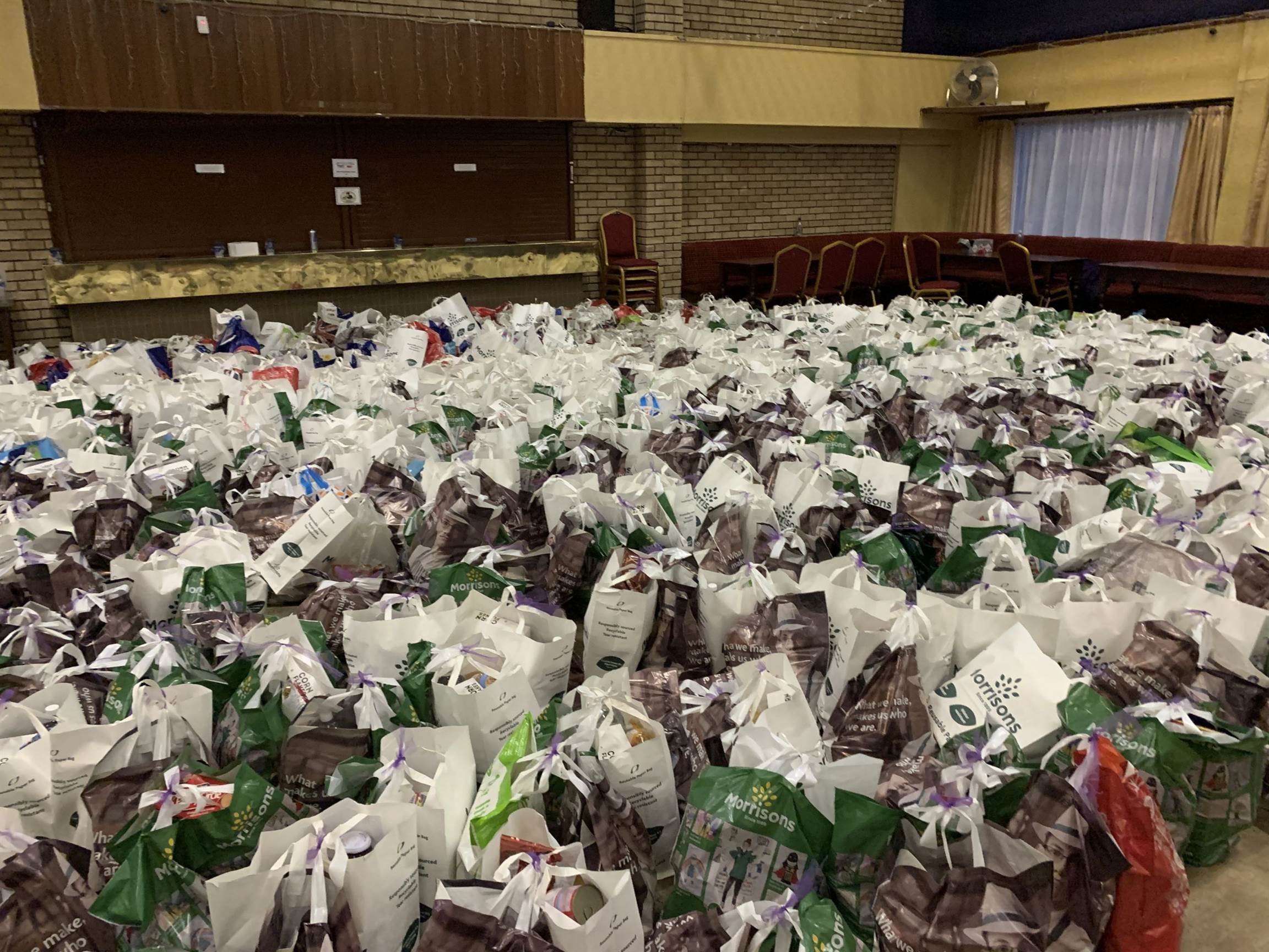 Over the weekend more than 50 volunteers helped pack the food into 4,000 carrier bags, with each family set to receive two bags of food.